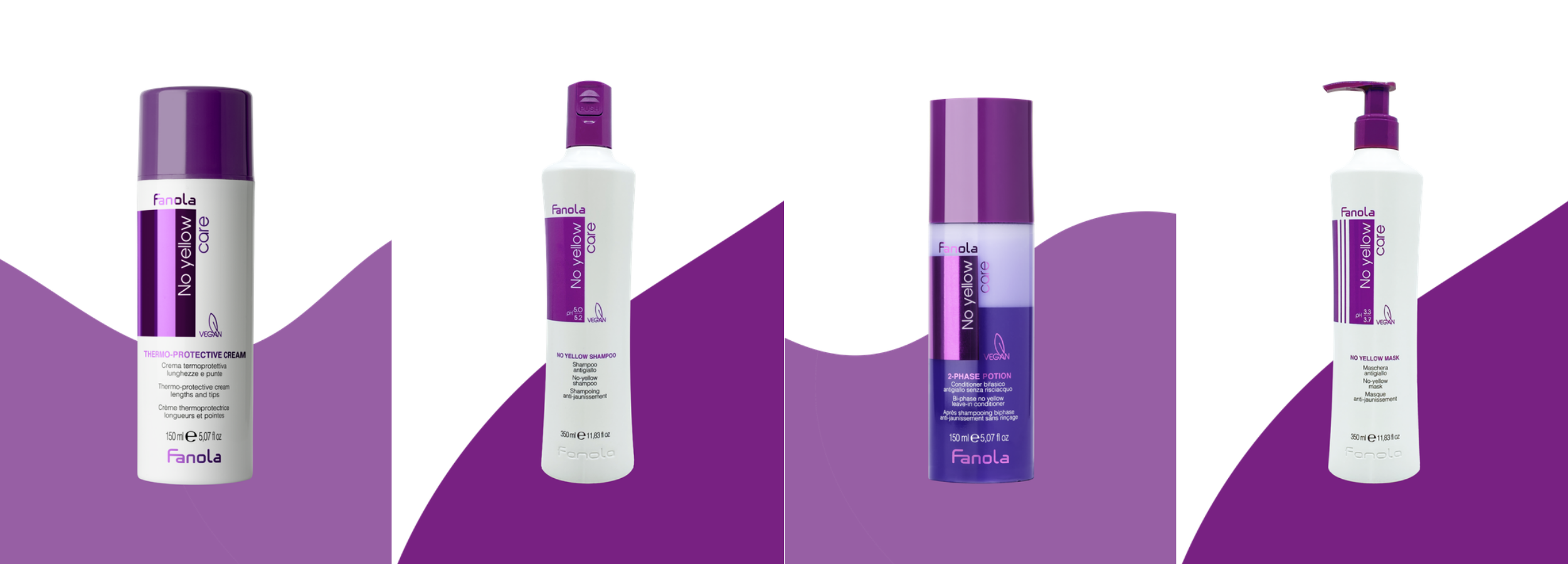 The Fanola No Yellow Care family is designed to keep blonde, bleached, highlighted, and grey hair looking cool, fresh, and vibrant by neutralizing unwanted yellow or brassy tones. Powered by extra violet pigments, this range gently balances warm reflections that can make light hair appear dull or discolored, restoring brightness and a cooler finish for a refreshed look. Beyond toning, the formulas help enhance softness, shine, and silkiness while protecting hair color between salon visits. Ideal for anyone with light-toned or grey hair, the No Yellow Care family helps maintain a luminous, healthy-looking shade with every wash or treatment, keeping hair beautifully balanced and radiant over time.