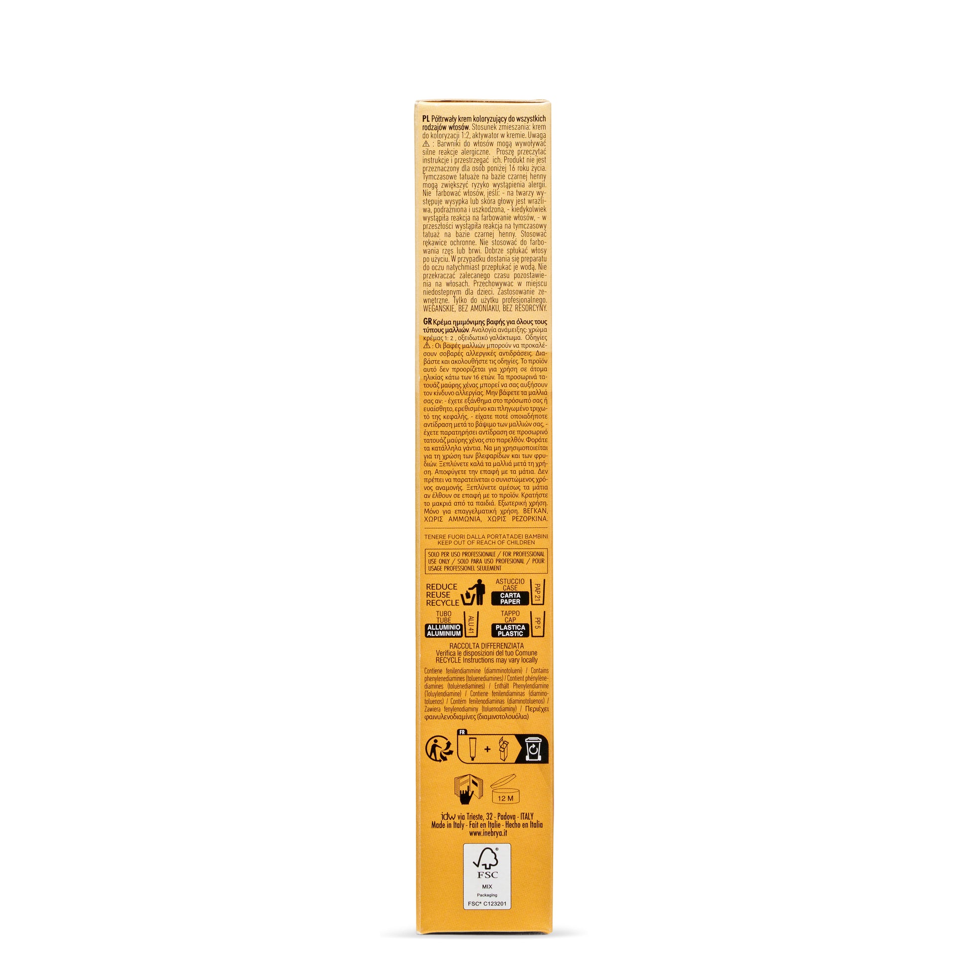 - Tubo reciclado y estuche con certificación FSC