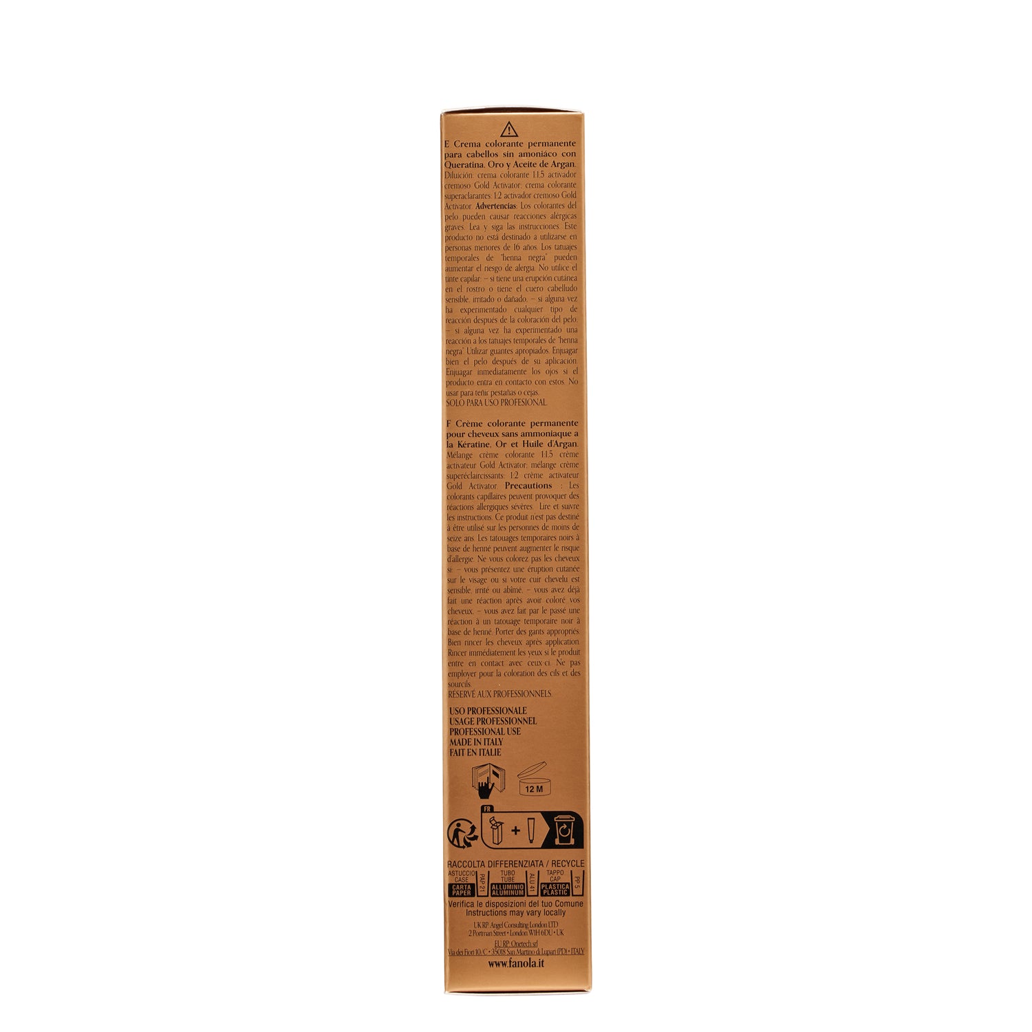 Vierta en un recipiente no metálico 50 ml de Color Keratin Oro Puro con 75 ml de Gold Activador Oro Puro y mezcle bien. Para los tonos superaclarantes (SA), mezcle 50 ml de Color Keratin Oro Puro con 100 ml de Gold Activator Oro Puro. Una vez preparada la mezcla, distribúyala uniformemente sobre el cabello seco. Transcurrido el tiempo de exposición, emulsione bien y enjuague con abundante agua hasta que el agua salga limpia. A continuación, utilice el champú iluminador Oro Therapy Gold.