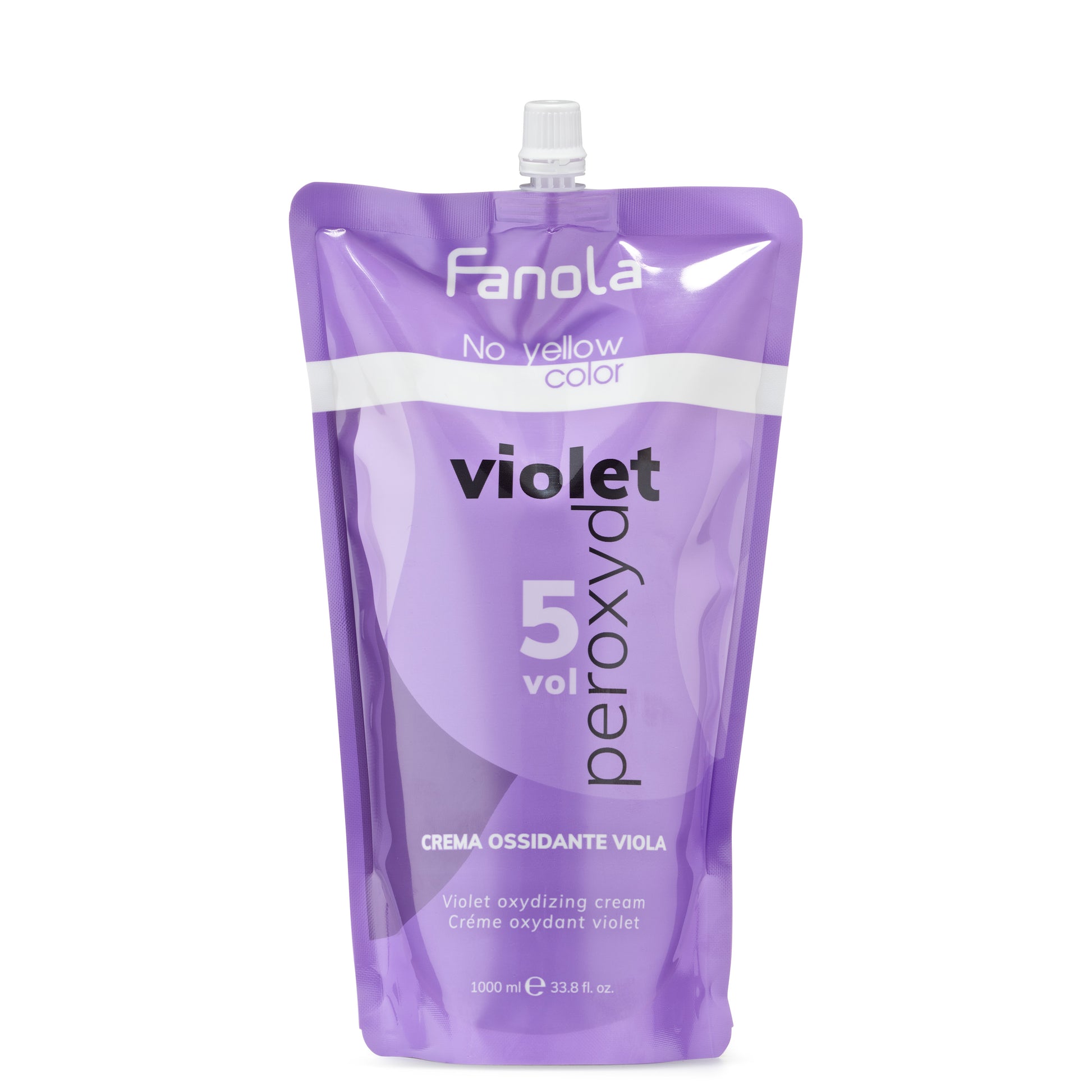 Violet Peroxyde 5 vol. es ideal para servicios de matización y decoloración gradual. Mezclado con el matizador, ayuda a mantener la correcta deposición del pigmento, no aclara las melaninas naturales y mejora la acción neutralizante de los tonos cálidos. Mezclado con los decolorantes, permite una aclaración natural y gradual (efecto de cabello besado por el sol).